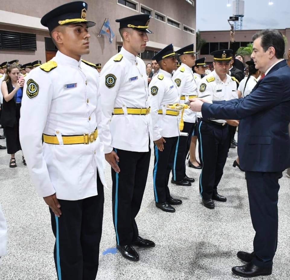 Participaron también el vicegobernador Carlos Silva Neder; el senador José Emilio Neder; el ministro de Gobierno, Marcelo Barbur; el secretario de Seguridad, Marcelo Pato; el jefe de Policía, Roger Coronel; la directora de la Escuela de Cadetes, María Khairallah; miembros de la Policía Nacional de Colombia, e invitados especiales.