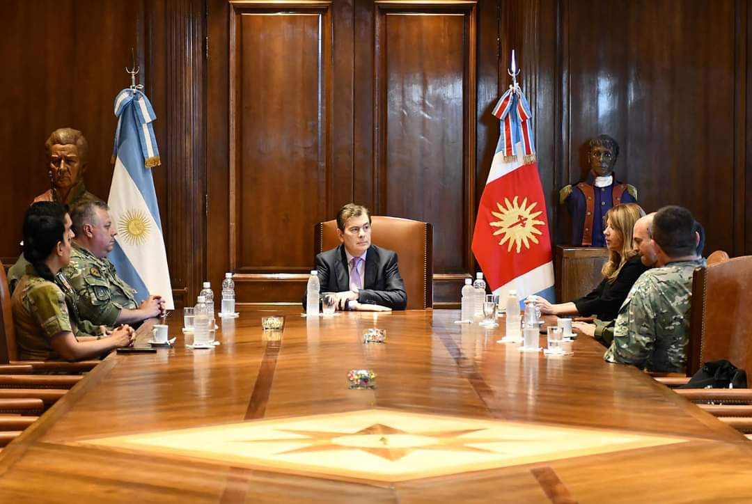 El gobernador Gerardo Zamora recibió la visita de las autoridades del Comando Electoral, integradas por el comodoro Gabriel Otero; el vicecomodoro Javier Stafulki; el jefe de Personal, mayor Enzo Velardez; de la Asesoría Jurídica, capitán Martín Díaz y los suboficiales principales María José Gigena y Sergio Ochoa. También participó la ministra de Justicia, Matilde O’Mill.