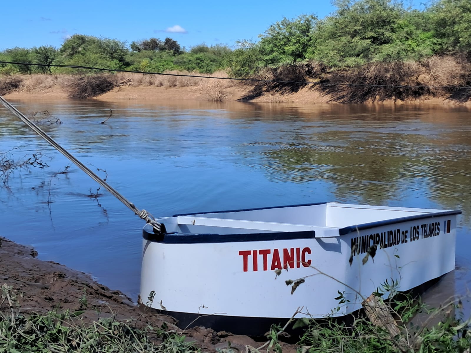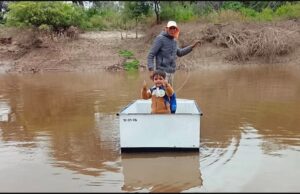 Niños de la Localidad de El Albardón en el interior del departamento Salavina que conforman la comunidad educativa del Jardín de Infantes N°371 y de la Escuela N°1189 de la localidad de Campo de Cejas, recibieron un bote que a través de la maroma (amarrado a un cable), de la Municipalidad de Los Telares a cargo de la Intendente Nora Roldán.