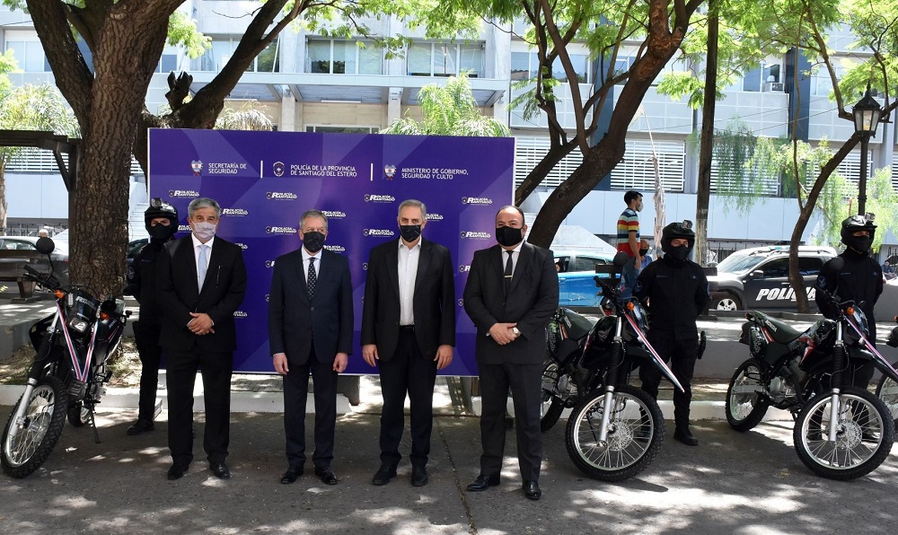 La ceremonia se desarrolló frente al edificio de Jefatura, encabezado por el jefe de Gabinete, Elías Suárez, y el ministro de Gobierno, Marcelo Barbur, quienes fueron recibidos por el secretario de Seguridad, David Pato, y el jefe de Policía, comisario general Roger Coronel. En este caso se hizo entrega de una primera tanda de motocicletas Honda Tornado 250 cc, equipadas con sus respectivos cascos con cámaras marca Parson para registro de las intervenciones que realizan los efectivos y que sirven como registro documental. Tras la entrega de llaves, el jefe de Policía expresó su agradecimiento al gobernador Gerardo Zamora por esta nueva entrega de equipamiento, “tal como lo viene realizando durante todo el año, para reforzar la seguridad de todos los santiagueños”.