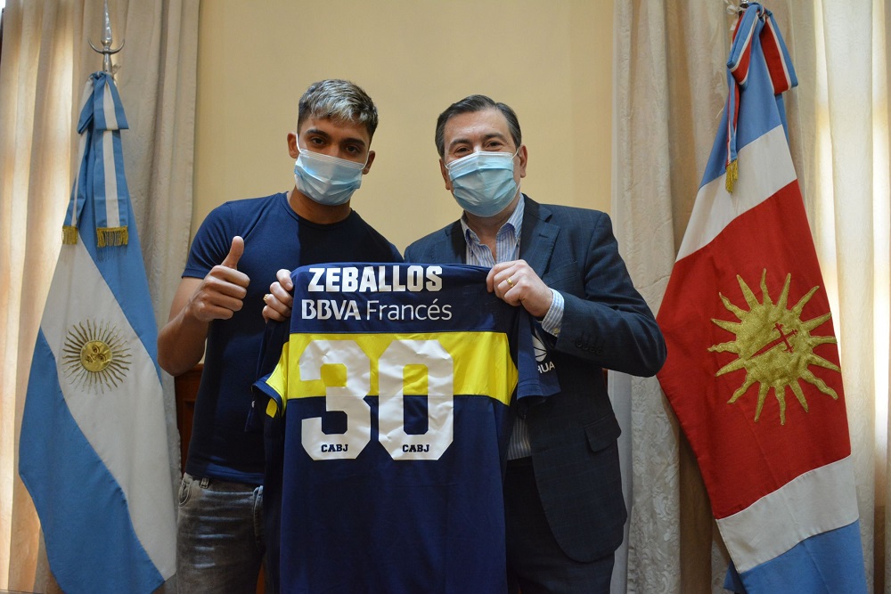 Durante el encuentro, Zeballos le obsequio una camiseta de Boca autografiada al primer mandatario, quien también le entregó un presente. Exequiel Zeballos estuvo acompañado de su papá, Oscar y su hermana Camila, además del subsecretario de Obras Públicas, Jorge Zuain y Rene Ruiz, primer entrenador de Exequiel en la escuelita de fútbol del Club Sarmiento de la Banda.