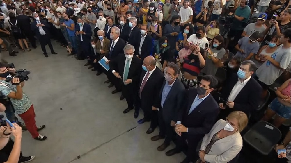 El anuncio fue realizado ante gran cantidad de público, compuesto por docentes y estudiantes de distintas provincias, además de funcionarios del gabinete nacional, gobernadores e intendentes. En este marco, el presidente hizo el lanzamiento del programa que prevé una inversión de $ 35.500 millones, bajo la coordinación de los ministerios de Obras Públicas y de Educación, y que en su primera etapa contempla la inclusión de al menos 100 mil estudiantes. Luego de los discursos de los ministros Jaime Perczyk (Educación) y Gabriel Katopodis (Obras Públicas), el presidente Alberto Fernández se dirigió a los presentes con un mensaje contundente, en el cual ratificó su compromiso con la educación como base del futuro para la Argentina. Destacó el acompañamiento de los gobernadores e intendentes, como actores fundamentales para la construcción de un país más federal, con igualdad de oportunidades para el desarrollo del conocimiento a partir de las necesidades de cada región. También consideró crucial en estos tiempos “darle instrumentos a los jóvenes para que puedan construirse su propio futuro” y reafirmó que “el principal objetivo de esta gestión, después de superar la pandemia, es que la Argentina vuelva a educarse”.