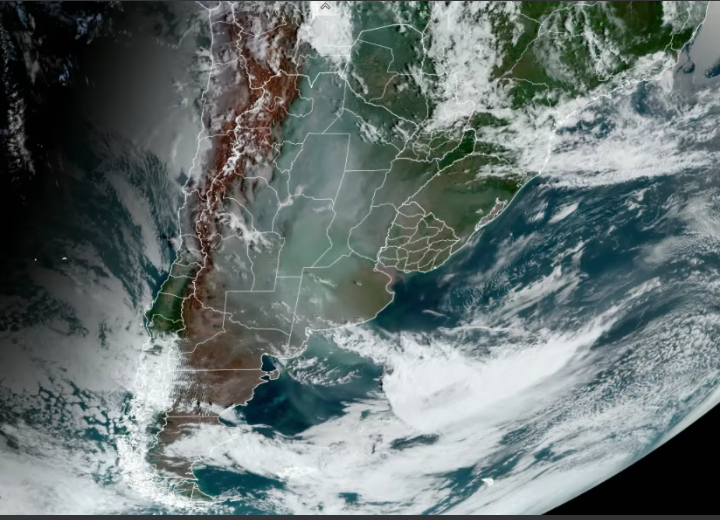 Según informa el servicio meteorológico nacional que esta tarde tenemos gran concentración de #humo, el cual se observa en la imagen satelital del #GOES16, producto de los numerosos #incendios que se registran en el centro y norte de #Argentina.