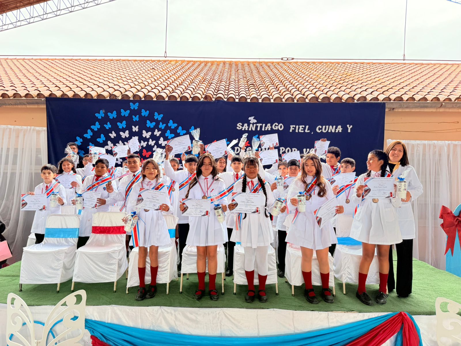 El momento de mayor solemnidad se vivió cuando los alumnos de **7mo Grado** realizaron su **Juramento de Lealtad a la Bandera**, sellando su compromiso con los valores provinciales ante la mirada orgullosa de sus familias y la comunidad educativa.